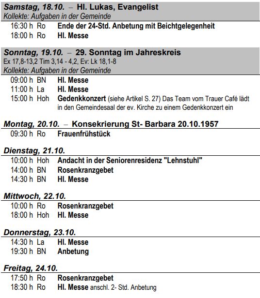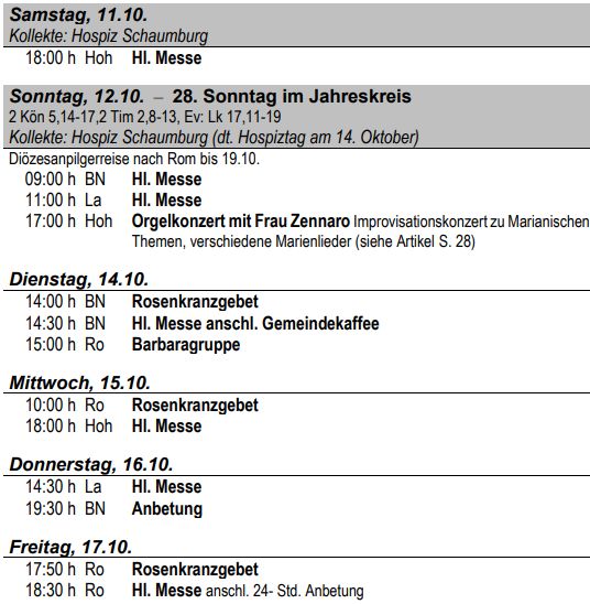 BN: NEU: Am Sonntag, dem 19. Oktober, wird um 17.00 Uhr eine Rosenkranzandacht in Bad Nenndorf gefeiert.