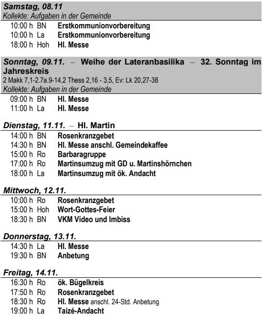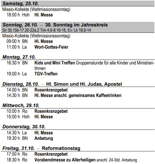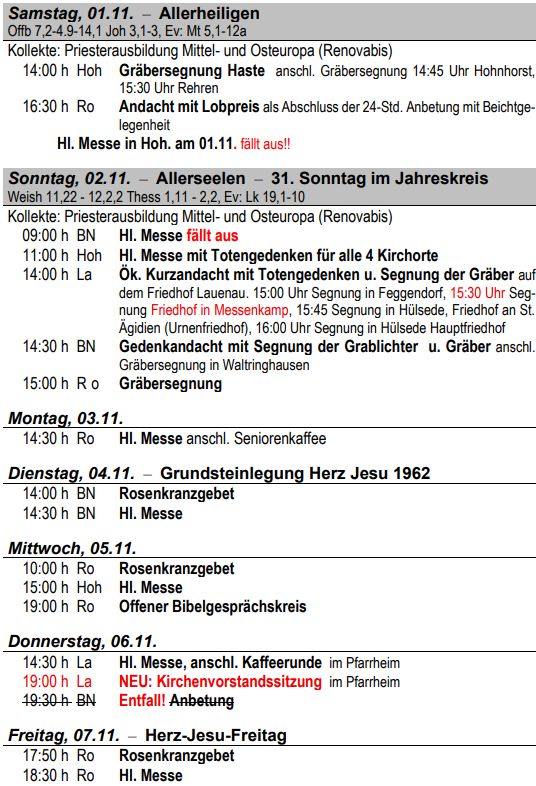 Alle:Aktuell: An diesem Wochenende findet ==>nur eine Hl. Messe statt: Am So, dem 2.11.25, um 11.00 Uhr in Hohnhorst mit Totengedenken.