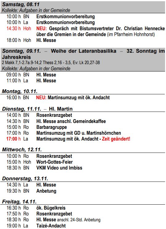 Alle:Aktuell/WICHTIG: Am kommenden Wochenende feiern wir in der Pfarrei nur eine Hl. Messe als ABENDMESSE am So, 23.11., um 18.00 Uhr in Bad Nenndorf. Alle Interessierten sind ab 16.00 Uhr zur ==>Vorbereitung und zum Mitgestalten des Gottesdienstes eingeladen!