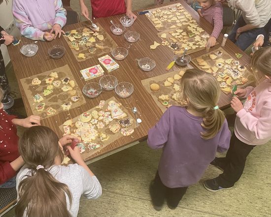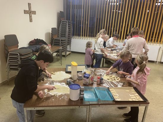 (MJ) Rückblick: Am Freitag vor dem 1. Advent haben sich in Lauenau elf Jungen und Mädchen getroffen um den Pfarsaal in eine Weihnachtsbäckerei zu verwandeln. Nachdem der Teig ausgerollt war, wurden eifrig Plätzchen ausgestochen. Sterne, Schneeflocken, Rentiere, Lebkuchenmännchen aber auch einen Grill gab es nach dem Ausstechen dann als Keks. Das wichtigste und vor allem schönste für die Kinder, war natürlich das Verzieren hinterher. So konnten zum Schluss viele tolle und vor allem leckere Kekse in den Keksdosen verstaut werden, um sie nun genüsslich zu Hause zu vernaschen. Wir wünschen allen eine schöne und besinnliche Vorweihnachtszeit.