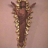 Gegenüber dem Altarraum befindet sich der Ort für die Taufe, der Taufkessel aus Bronze, auf einen Sockelstein gesetzt, mit einem Deckel, der das Jonas-Motiv als Zeichen der Auferstehung Christi und der Wiedergeburt des Getauften darstellt, daneben das Sakrarium und an der Orgelbrüstung mit den durch Hanfseile verbundenen Bronzestäben der Taufschrein mit der Taufschale, der Taufkerze und dem Taufkleid.Zum Vergrössern anklicken …