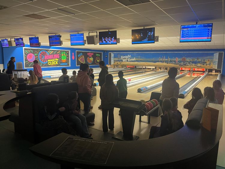 Als kleines Dankeschön an die fleißigen Helfer, die beim Krippenspiel und der Sternsinger Aktion dabei waren, haben wir uns am Sonntag Nachmittag zum Bowling getroffen. Die Kids hatten viel Spaß und auch der ein oder andere “Strike“ wurde gefeiert. Im Anschluss an das Spiel, gab es noch was Leckeres für den kleinen Hunger oder auch großen. Was eignet sich dabei besonders gut? Natürlich Pommes und Nuggets. Diese wurden genüsslich verzehrt und die Kinder hatten dabei ein wenig Zeit sich auszutauschen. Alle haben sich über das Wiedersehen und die gemeinsame Zeit gefreut.