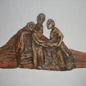 6. Station: Veronika reicht Jesus das Schweißtuch. - "Mein Gesicht ist vom Weinen rot und Todesschatten liegt auf meinen Wimpern." (Hi 16,16)