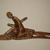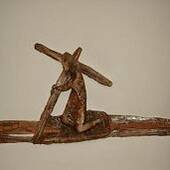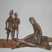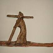 5. Station: Simon von Zyrene hilft Jesus das Kreuz tragen. - "Auf dem Weg trafen sie einen Mann aus Kyrene namens Simon; ihn zwangen sie, sein Kreuz zu tragen" (Mt 27,32)